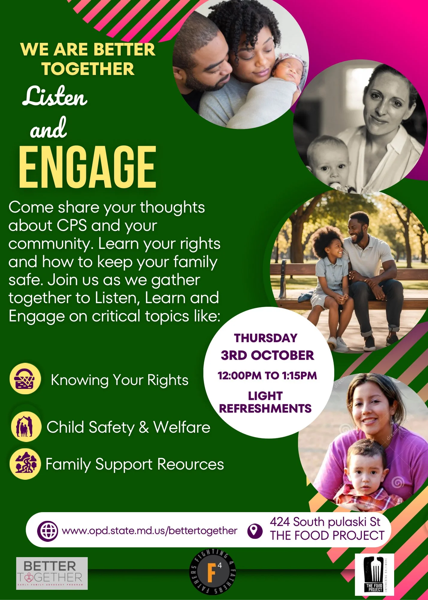 This event is hosted by Better Together Baltimore, Fathers Fighting 4 Fathers, and The Food Project.