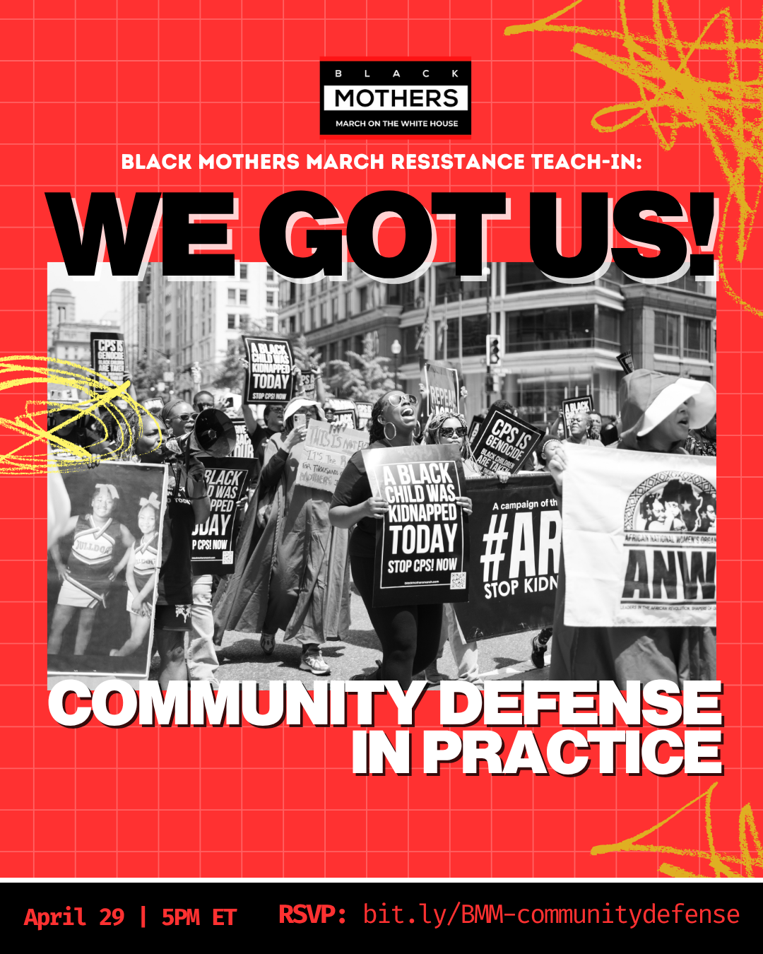 Please join us on April 29th at 5PM for a Black Mothers March Resistance Teach-In: We Got Us! Community Defense in Practice.