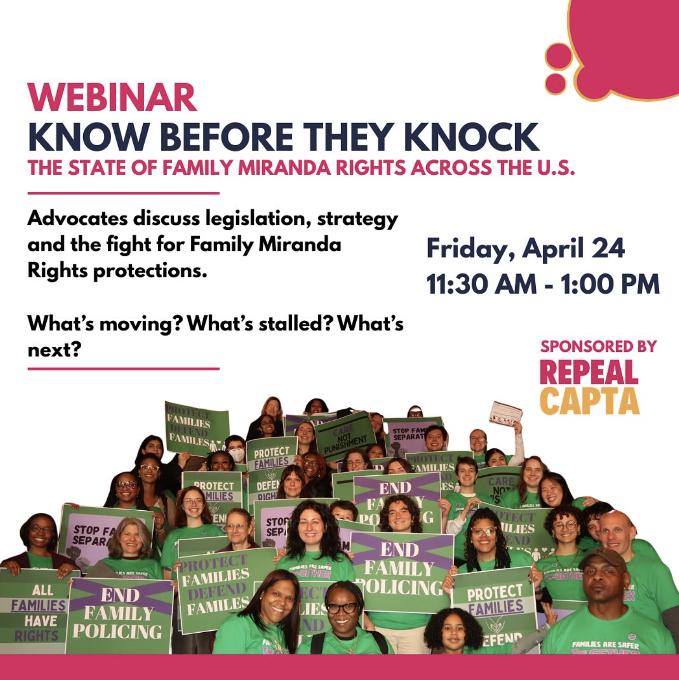 This national webinar brings together advocates from multiple states who are working to secure “Family Miranda” protections, clear notice of rights provided both verbally and in writing before questioning, searches, or coerced agreements during child abuse investigations.