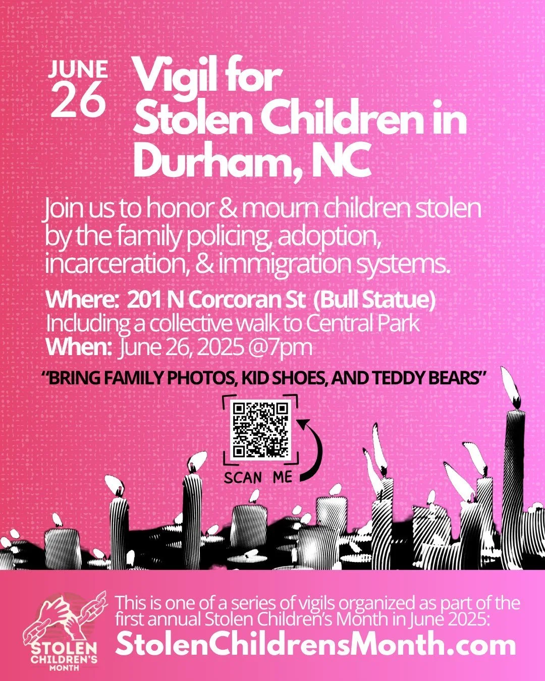 Hold a vigil in your city on June 26th, 2025, to honor stolen children. RSVP for community calls to access planning support here.